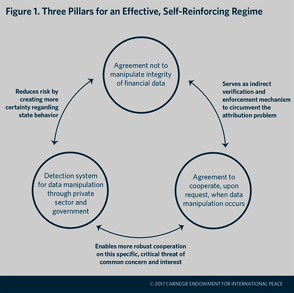 The Carnegie Endowment has proposed that the G20 explicitly commit not to engage in offensive cyber operations that could undermine financial stability, namely manipulating the integrity of data of financial institutions, and to cooperate when such incidents occur. Such an agreement by the world’s leading economies would send a clear signal condemning such activity and enable future cooperation.