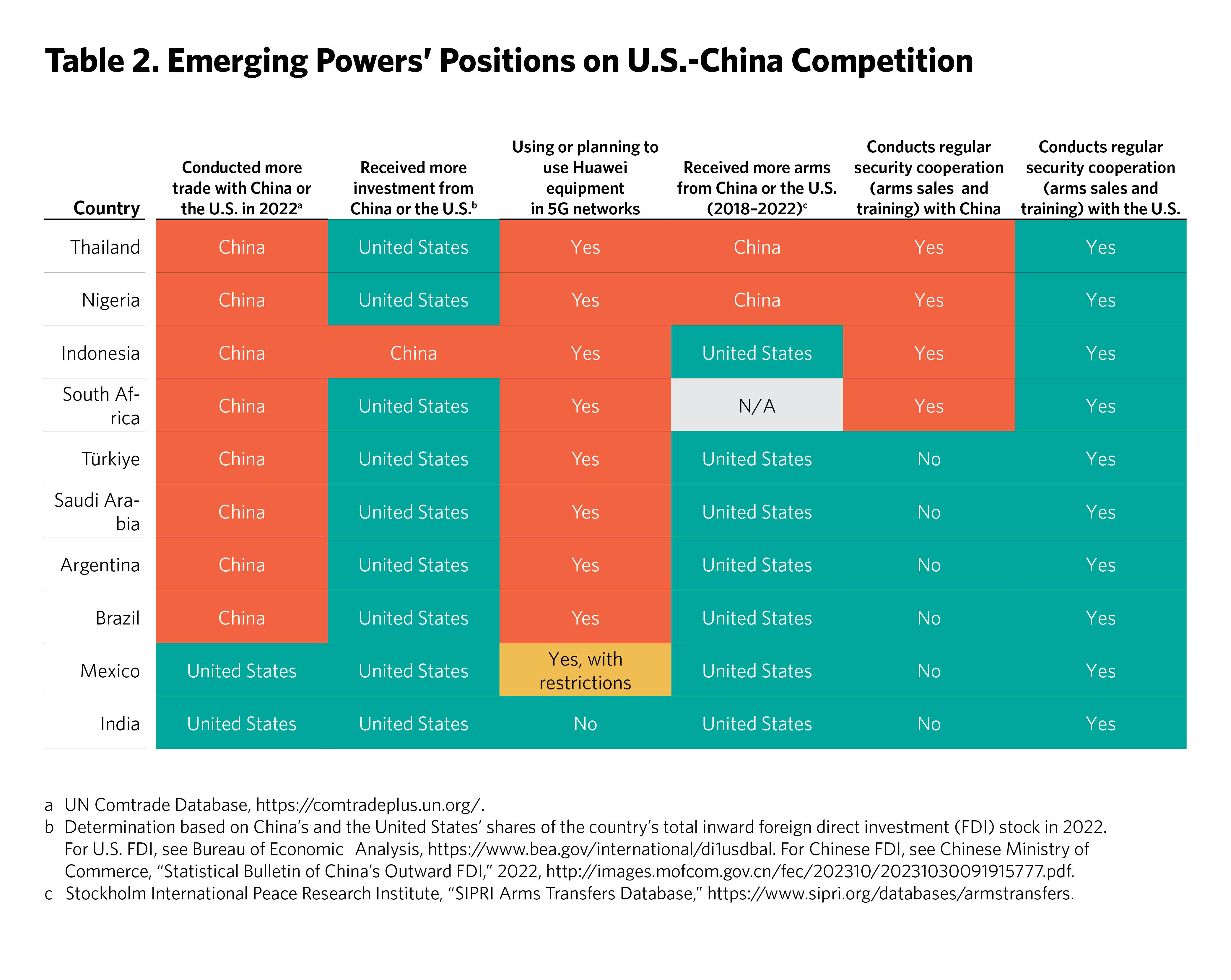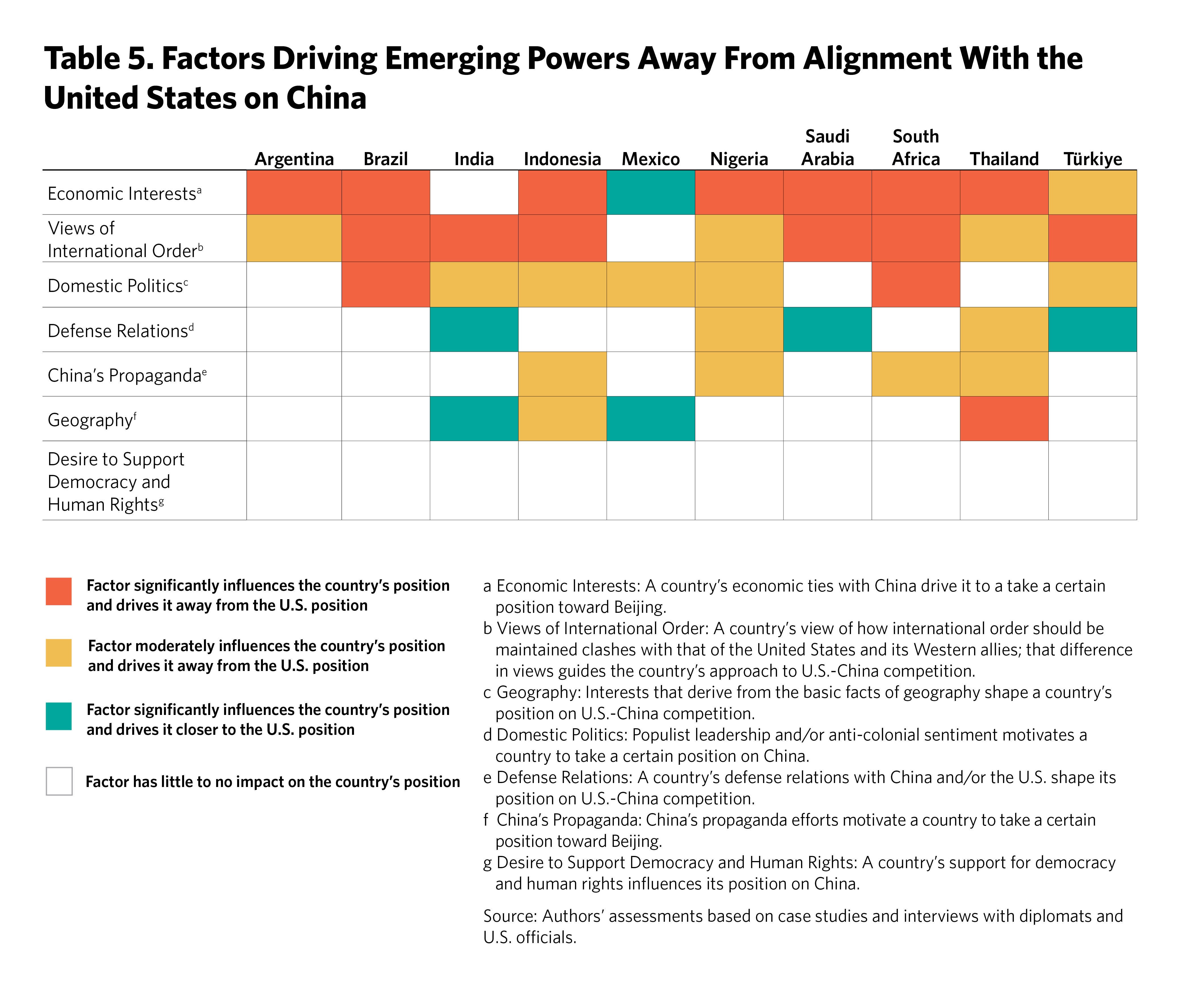 The next two chapters of this report outline the positions these ten emerging powers have taken on the war in Ukraine and on U.S.-China competition and evaluate the degree of their alignment with the United States. Overall, the emerging powers are loath to pick a side in strategic competition between great powers. Their approaches to the war in Ukraine and U.S.-China competition have, for the most part, involved striking a middle ground. Some have pursued courses of action that run counter to the strategic objectives of the United States; others have acted in closer alignment with it.